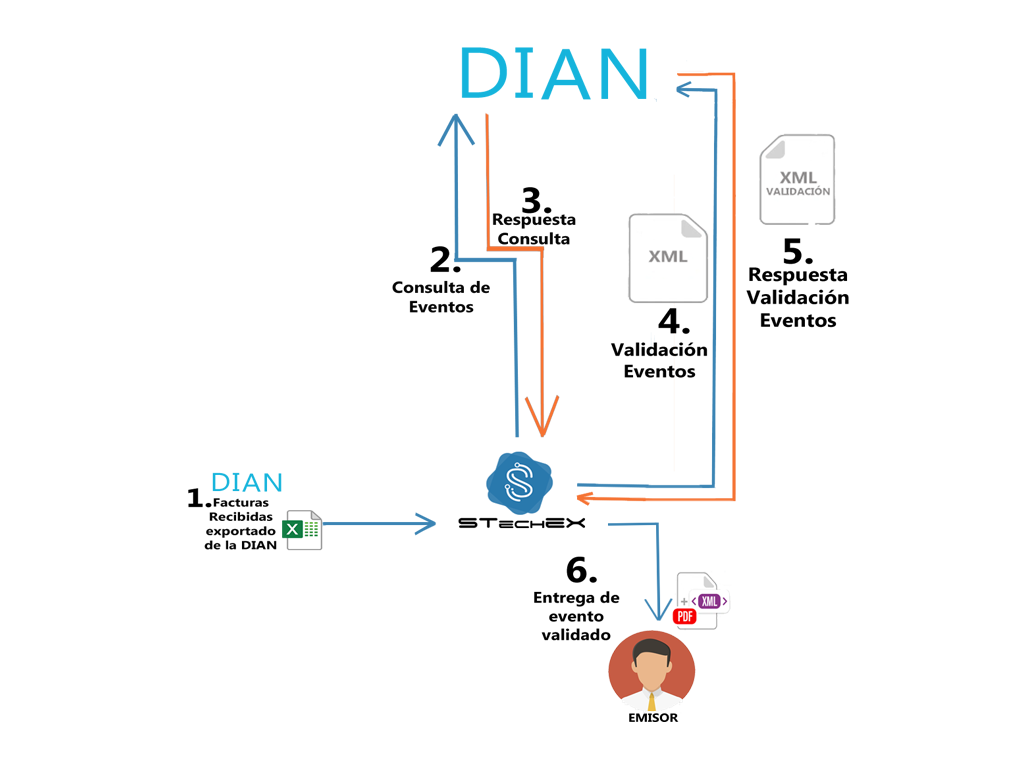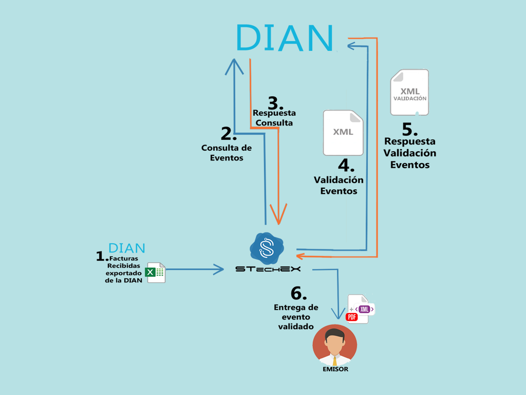 En este caso es un proceso mediante el cual se desea realizar la auditoria y la realización de los eventos que faltan a las facturas de compra. Descargando un archivo Excel de la plataforma Dian.